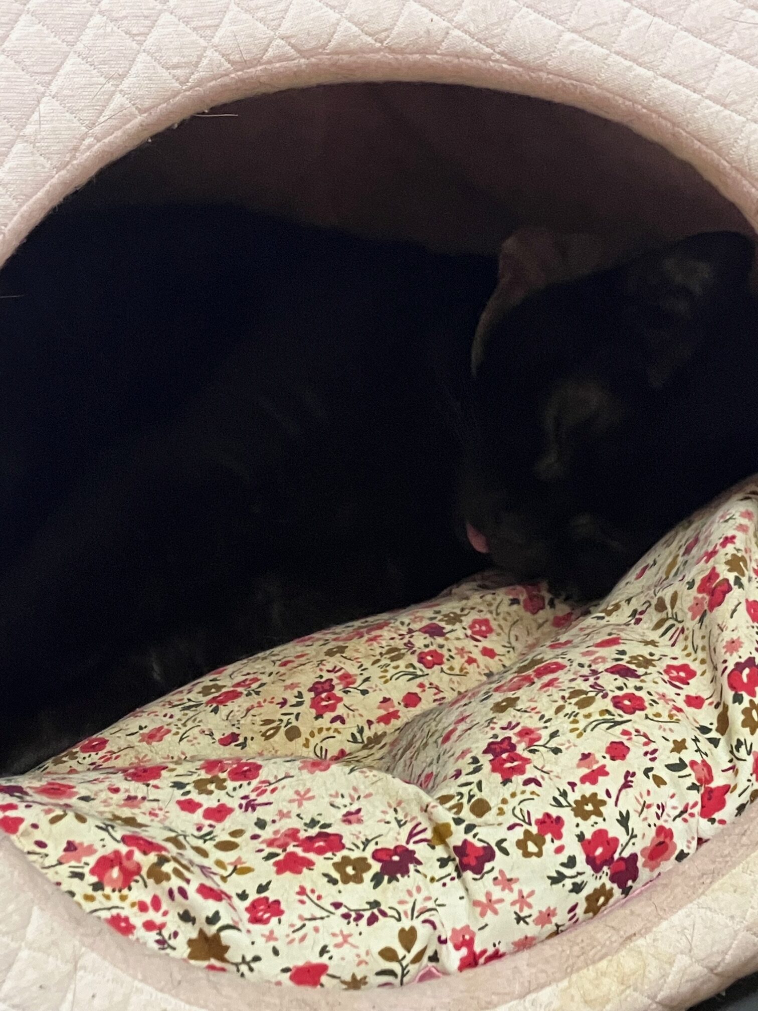 今回の画像は「しあわせそうに眠るくろねこちゃん」です。これは、今飼っている保護猫のくろちゃんの写真です。かわいく寝てたので、思わずぱしゃりと写真撮ってしまいました。